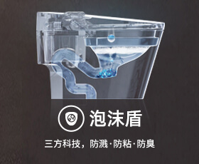 搭載獨特的“泡沫盾2.0”技術,360°無死角泡沫潤壁,在馬桶表面形成致密泡沫層,有效的避免了濺水、粘黏、異味、病菌等難題